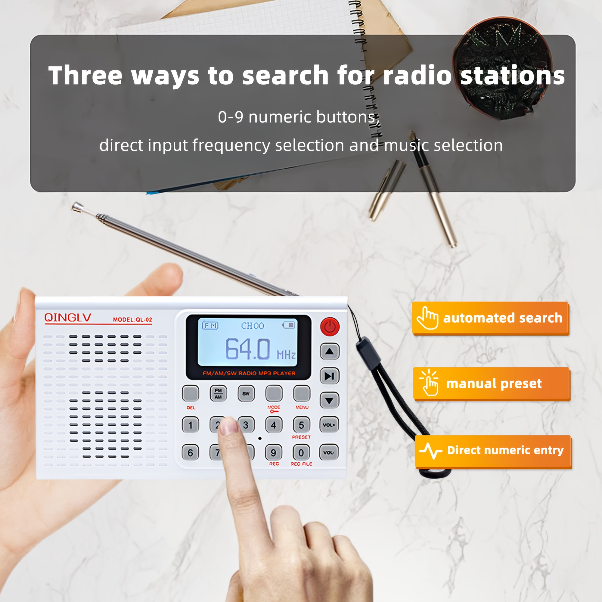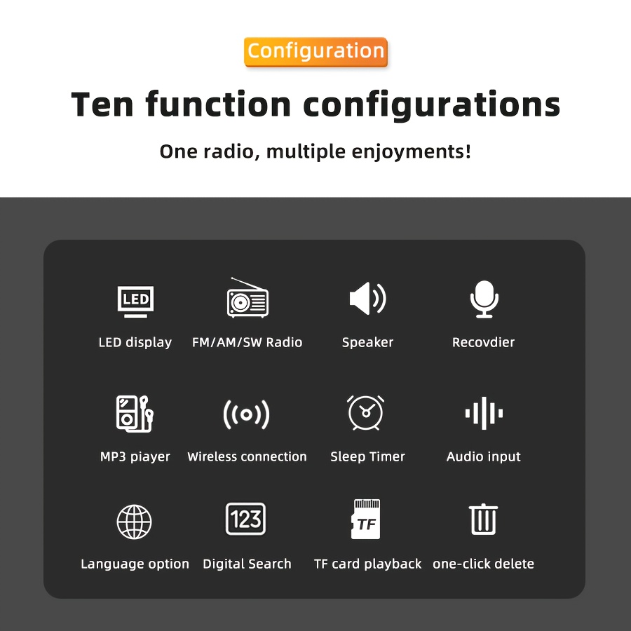 A Multi-Functional FM/AM/SW Radio with a 3W Full Band Speaker, a 3.5Mm Headset Interface, USB Charging, Compact Indoor Design, Wireless Connection, Wireless Transmission, Back-Mounted Holder Design, Suitable for Indoor, Outdoor And Emergency Use, Outdoor Enthusiasts, Camping, And Hiking