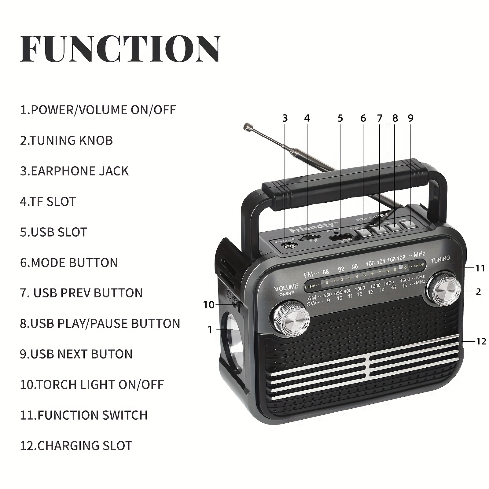 128BT Portable All-Band Radio with FM/AM/SW1-6, USB/TF/BT Connectivity, Dual Power (Battery/USB), Loud Speaker & Headphone Jack, Digital Display, Ergonomic Handle & Protective Grille - Indoor/Outdoor Multi-Wave Receiver with AM/FM/SW1-6 Tuning, USB/TF/BT Streaming, Battery/USB Power Options, Compact & Portable Design for Home, Travel, Camping, Emergencies - Ideal for Music & News Use, USB Radio Portable