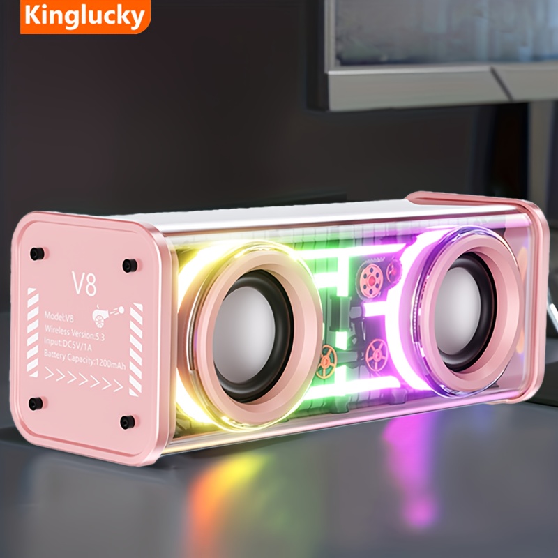[Kinglucky]V8 - New Wireless Speaker, Portable Subwoofer with LED Lights, Stocking Stuffers, Powerful Crystal Clear Sound, All Day Playtime, BT 5.4, TWS Paring, Small Wireless Speaker for Outdoor, Black, White, Halloween Gift