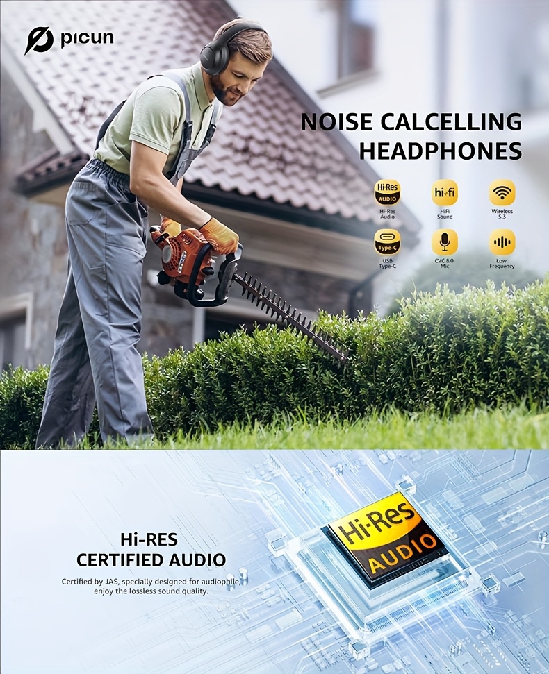 [Picun ANC Headphones] Picun Active Noise Cancelling Headphones | 100 Hours Playtime Wireless Over Ear Headphone for Travel, Home, Office with ENC