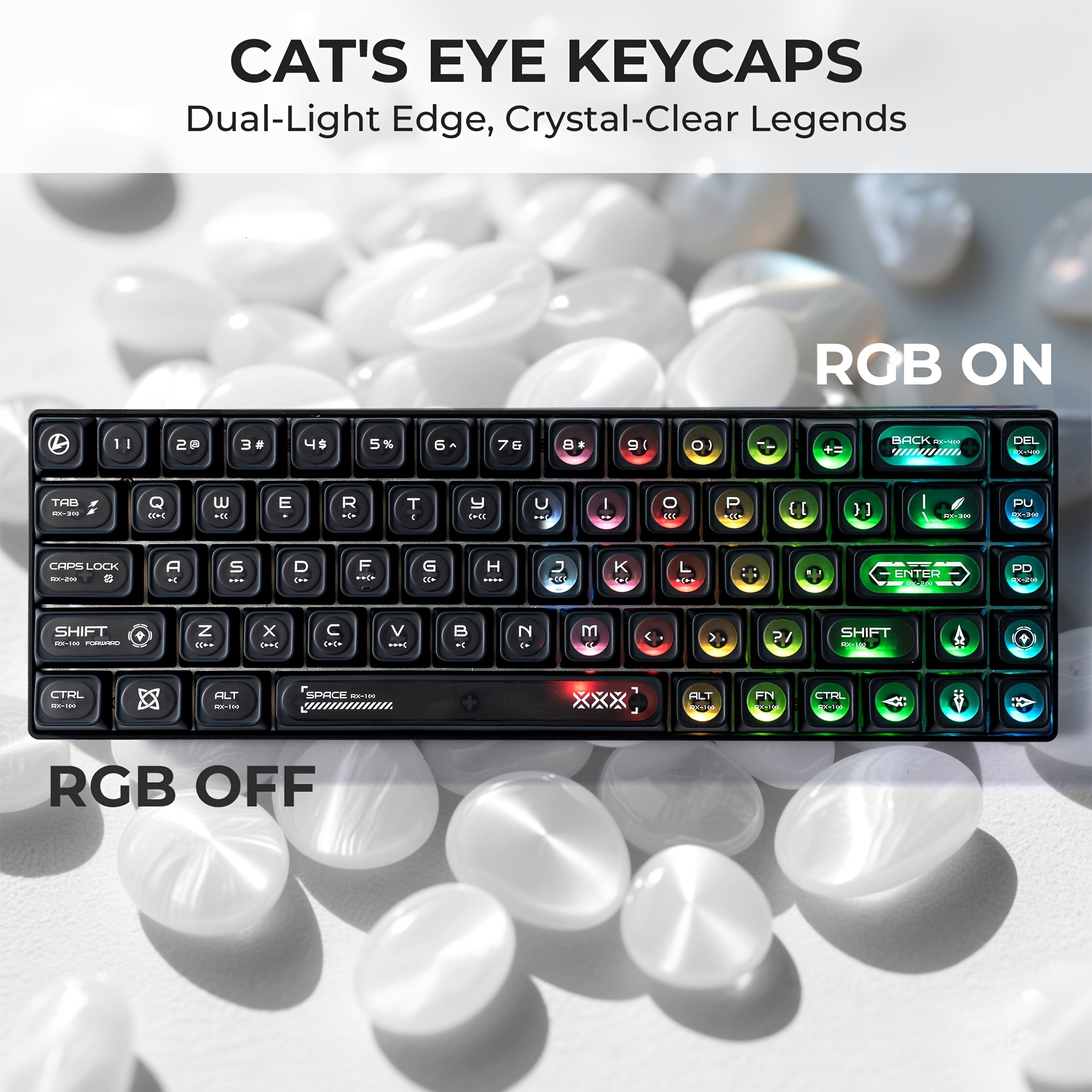 White Cat'S Eye Stone Max Keycaps for a Dark And Cool Magnetic Axis Mechanical Keyboard, Suitable for Customized DIY Trendy Peripherals.