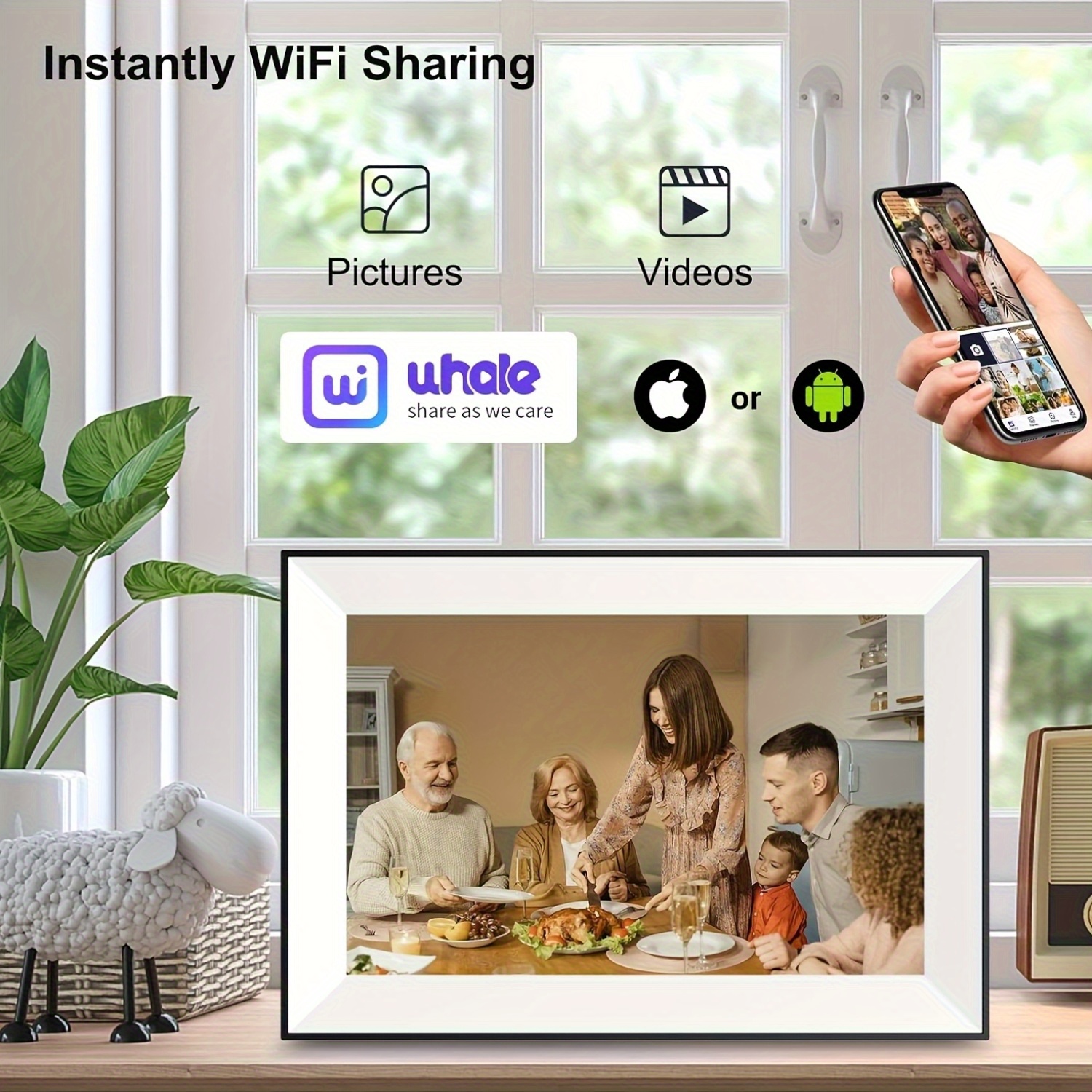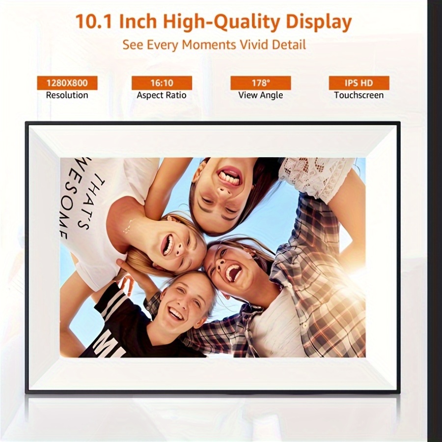 10.1 Inch WiFi Digital Photo Frame - HD Touchscreen, Auto Rotation, 1280x800 Resolution, 16:10 Aspect Ratio, 178° Viewing Angle, Load Photos & Videos from Phone/SD Card, Perfect Gift for Holidays, Birthdays, Anniversaries, Photo Display Unit, Modern Decor Accessory, Highquality Display