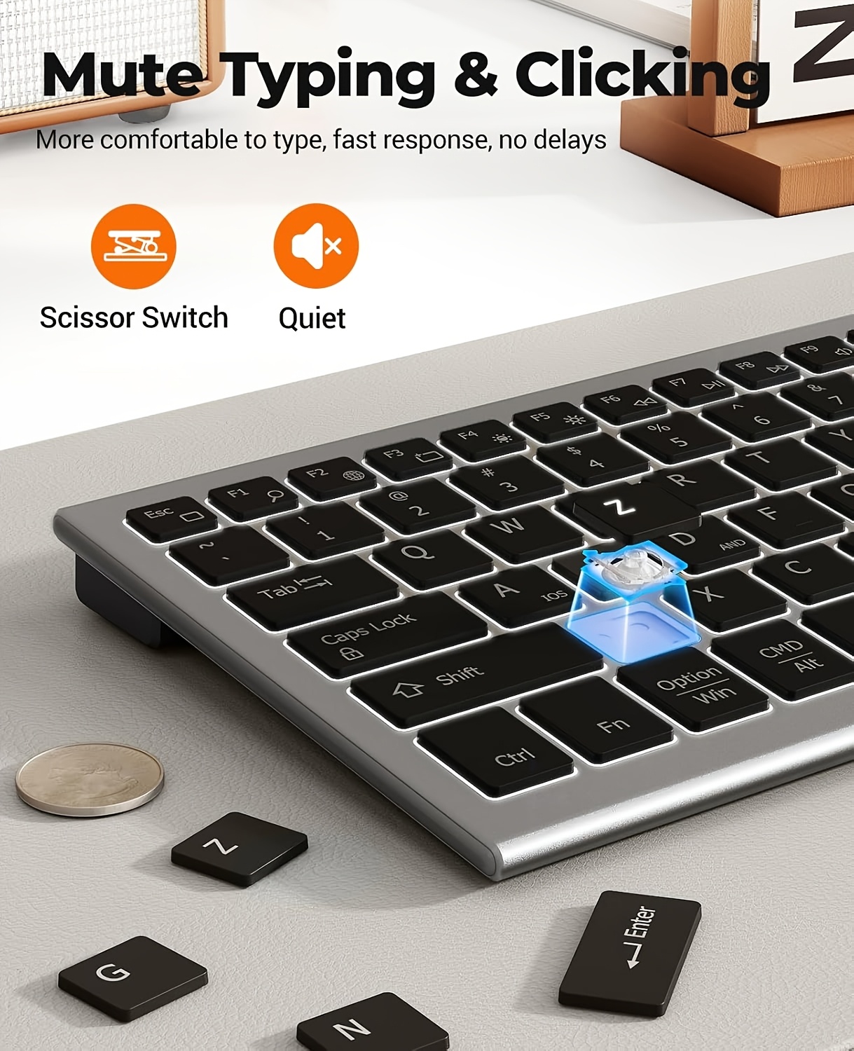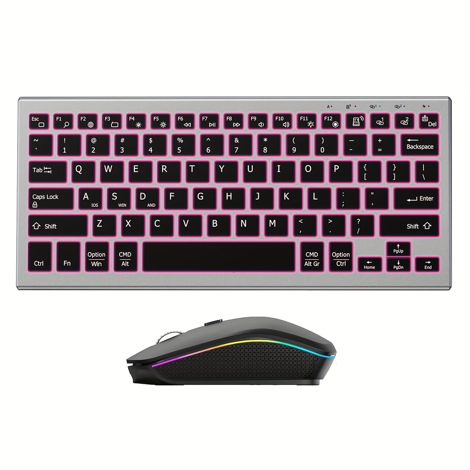 Portable Bluetooth Keyboard Mouse Combo 2.4G Support 3 Devices 7 Backlight Keyboard Mouse Rechargeable Slim Keyboard for Windows/Mac OS/Notebook, Portable Computing, Travel Keyboard, Compact Design, Lightweight Combo, Durable Build, Highperformance Gadget, Tech Enthusiasts, Students Laptop