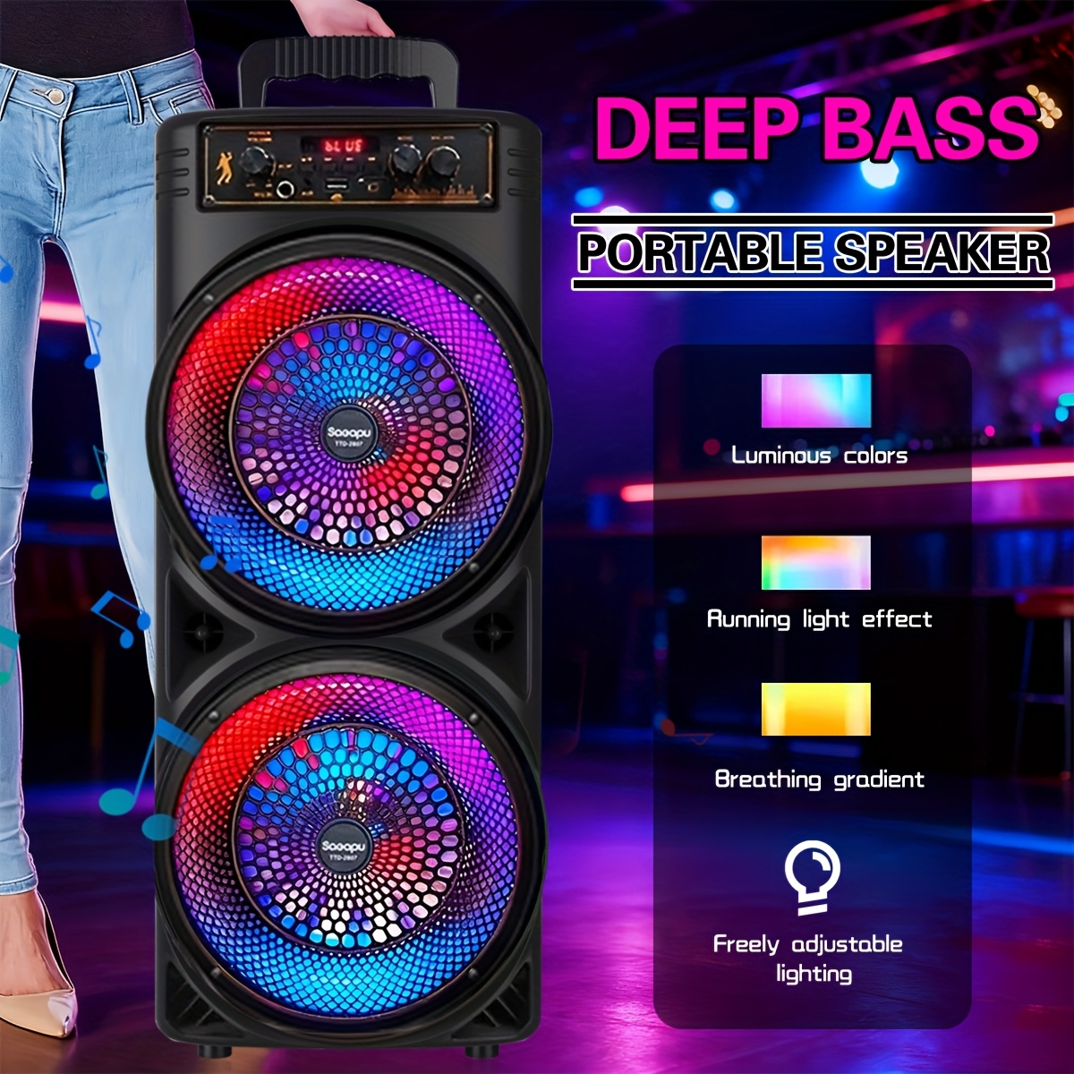 Large Outdoor Portable Wireless 3D Speaker, Professional Wireless Karaoke Machine with Microphone, RGB Light, 2400mAh Rechargeable Battery, USB Charging - Perfect for Family Gatherings, and Parties, Travel, Home Entertainment