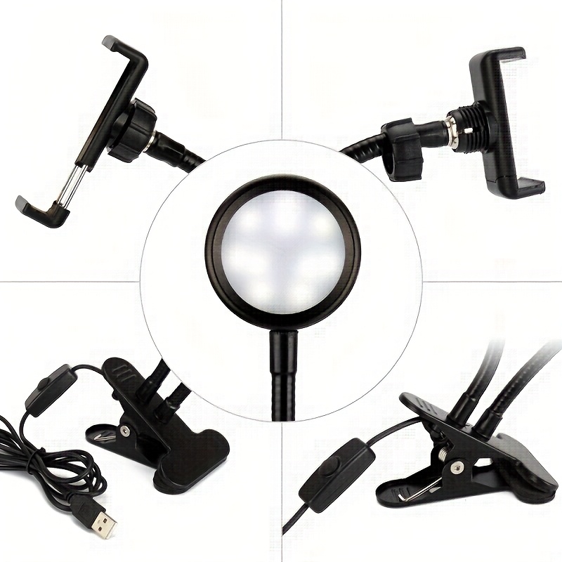 [LED Selfie Light] USB Powered Adjustable LED Selfie Light with Phone Holder | Dual-Color Ring Light for Live Streaming and Beauty | Ergonomic Design and Flexible Gooseneck Lamp, No Battery Required