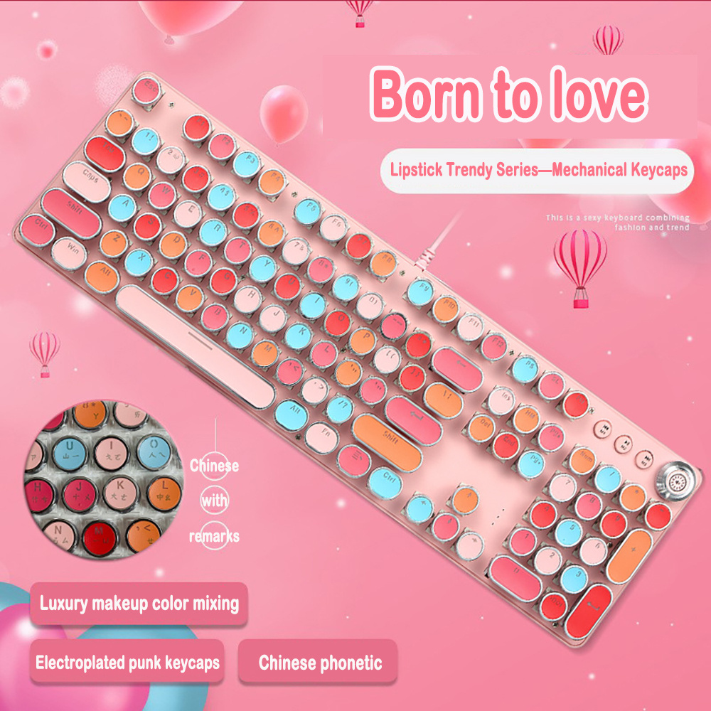 Lipstick Series 104 Mechanical Keyboard with Transparent Circular Keycaps - Electroplated, ABS Material, Vibrant Colors, Durable & Easy to Clean