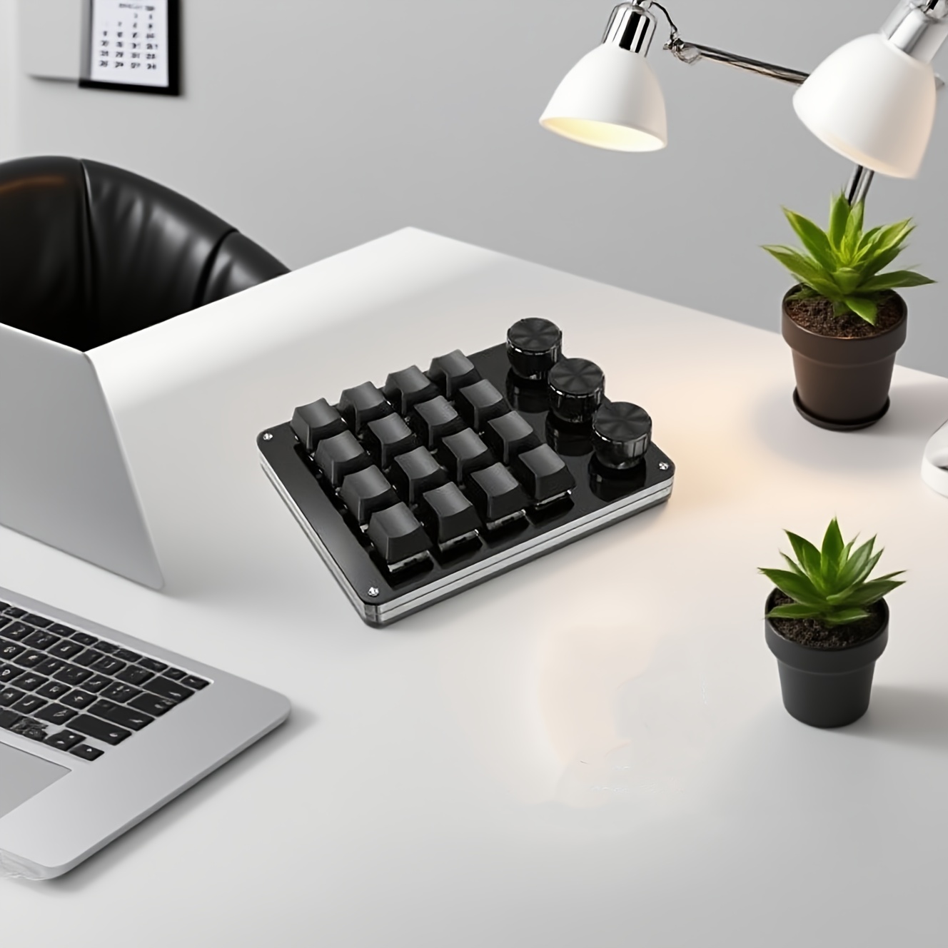 Multi-Mode Programming Macro Key Keyboard with Knob - USB-Powered, Ambidextrous, Hotkeys & Media Controls for Gaming, Office, and Multimedia - Sleek Black Design, No Battery Needed, Gaming Keyboard, Office Keyboard, Modern Aesthetic, Durable Construction, Keyboard And Mouse Mechanical, Mechanical Keyboard, Keyboard Mechanical, Keyboard Keycap