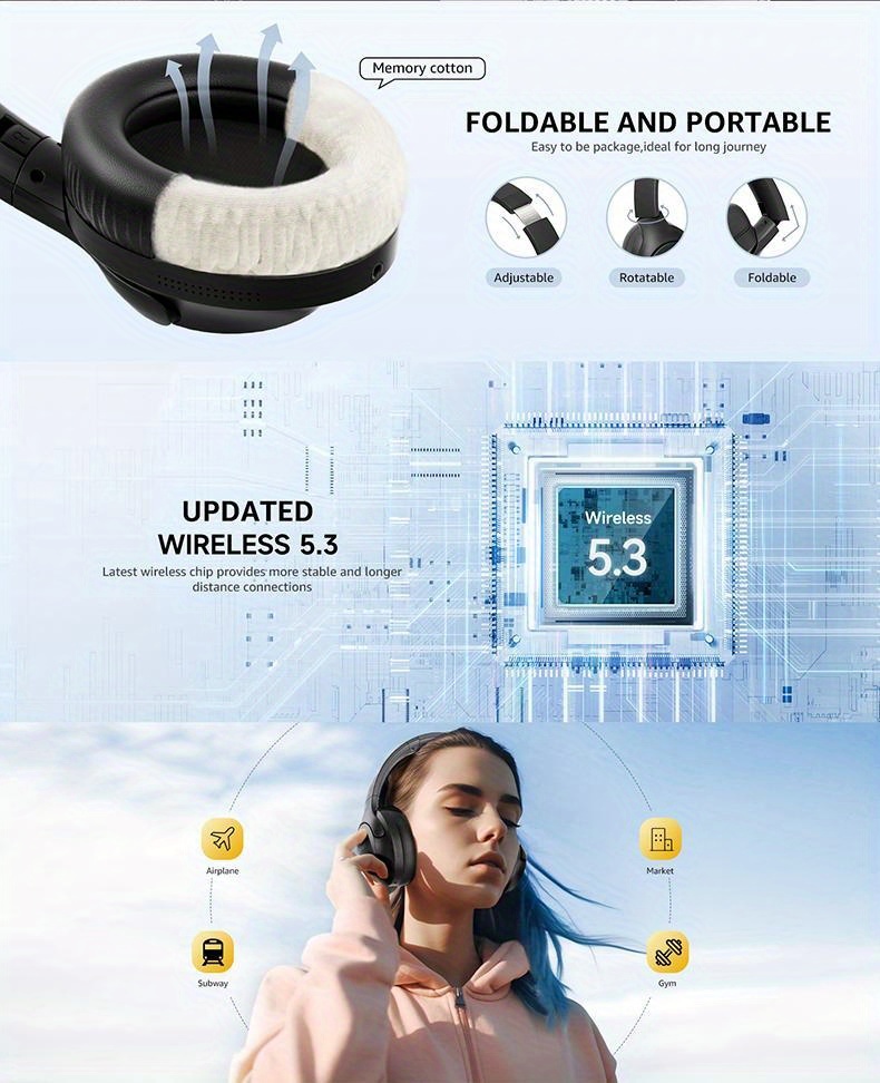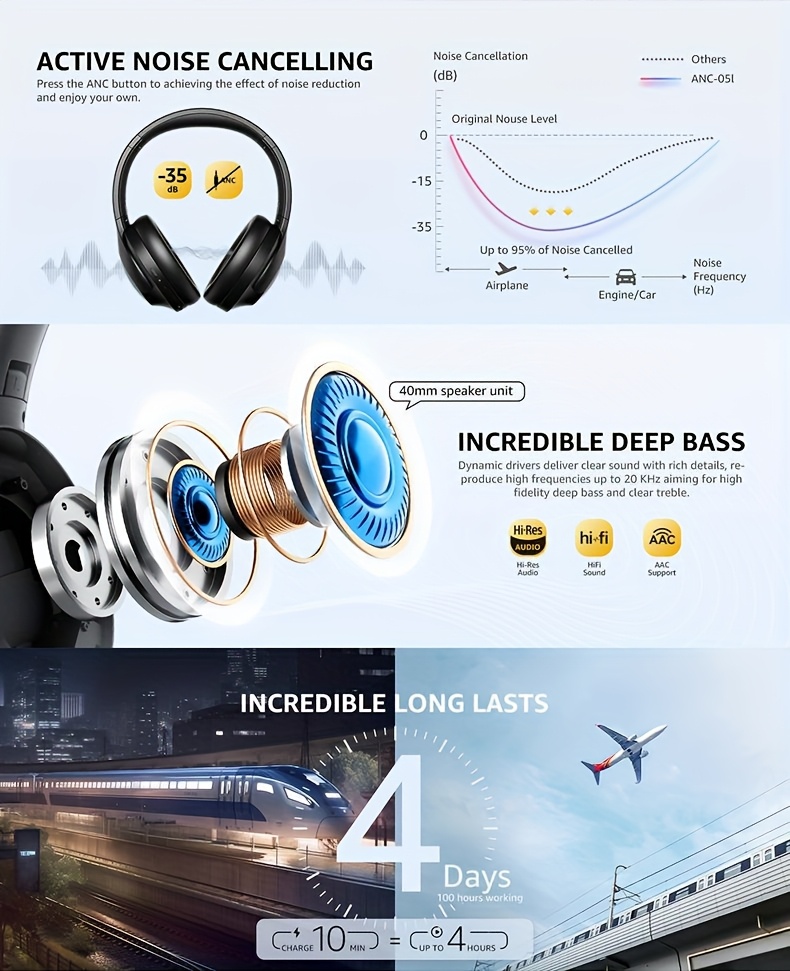 [Picun ANC Headphones] Picun Active Noise Cancelling Headphones | 100 Hours Playtime Wireless Over Ear Headphone for Travel, Home, Office with ENC