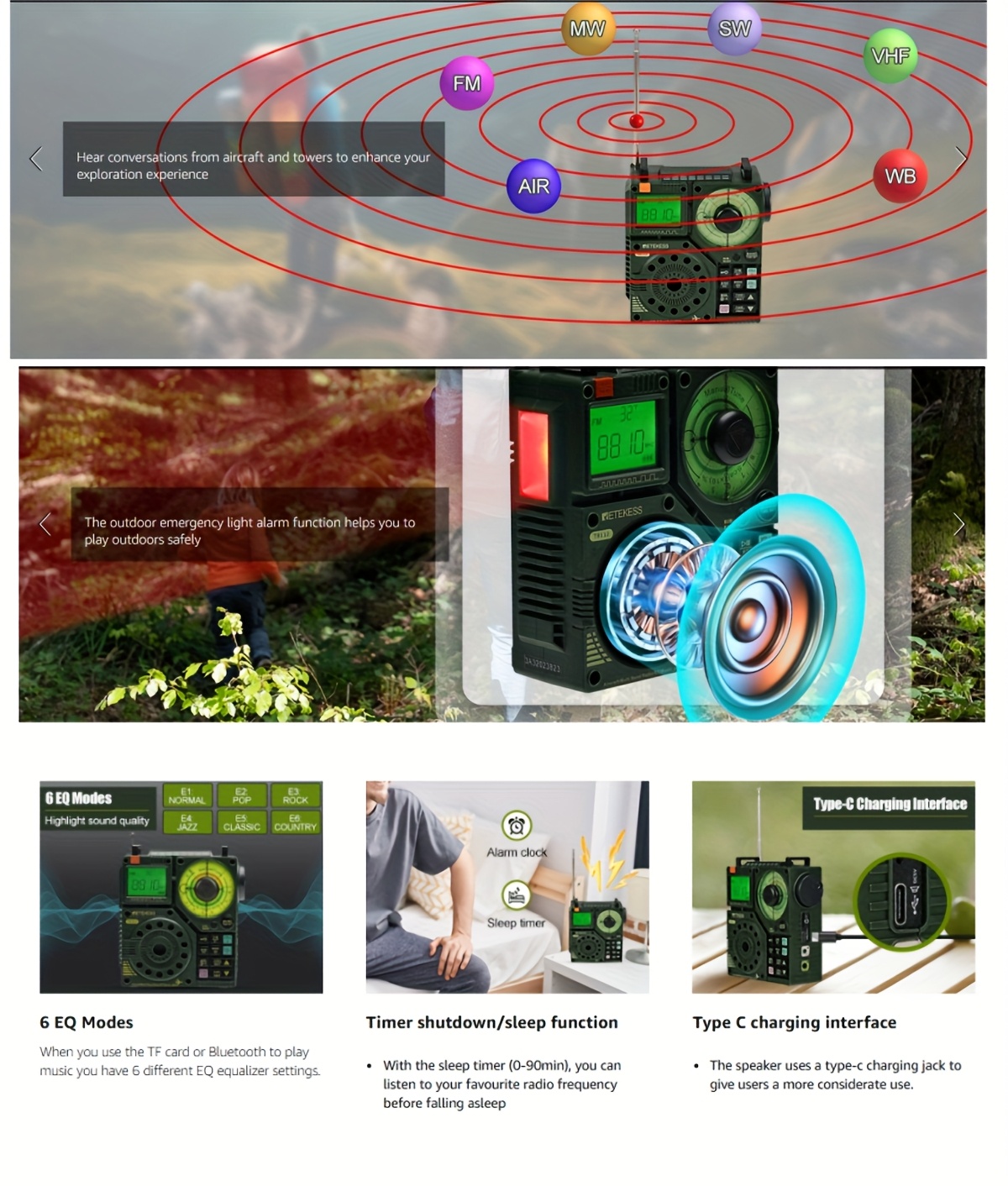 Portable Radio AM FM, Retekess TR112 Shortwave Radio Receiver, AIR VHF AM FM SW WB Multiband Radio Receiver