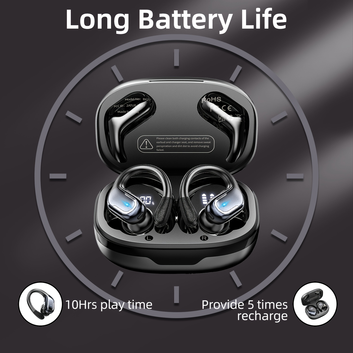 [Pure Bass Sound] LIFEBEE Wireless Earbuds | Earphones with Earhooks | Pure Bass Sound | ENC Noise Cancelling | Dual-LED Display | Built-in Microphone