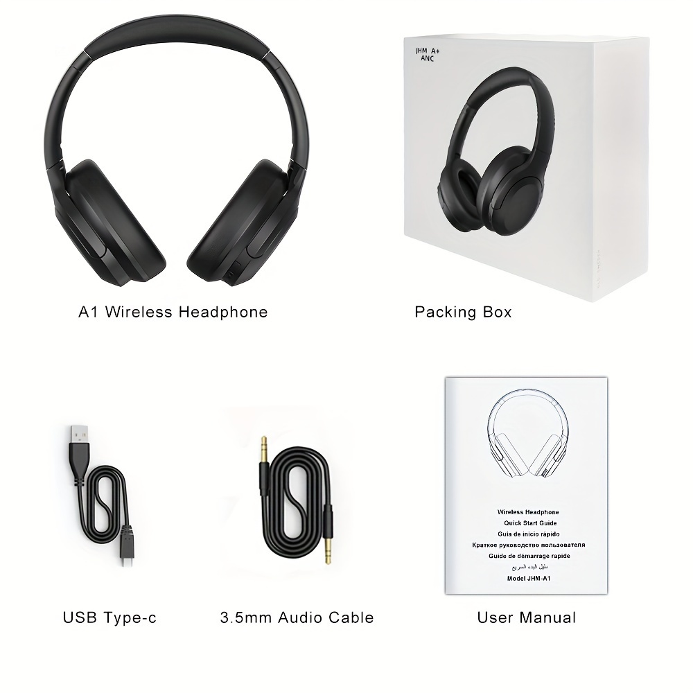 [Wireless ANC Active Headphones] LIFEBEE Active Noise Cancelling Over-Ear Headphones, Wireless ANC Earbuds with Touch Control, Condenser Mic, Lightweight Plastic Semi-Open-Back Design, Sports & Exercise Compatible, Rechargeable Lithium Polymer Battery, Volume Control, Noise Cancelling for Travel & Office