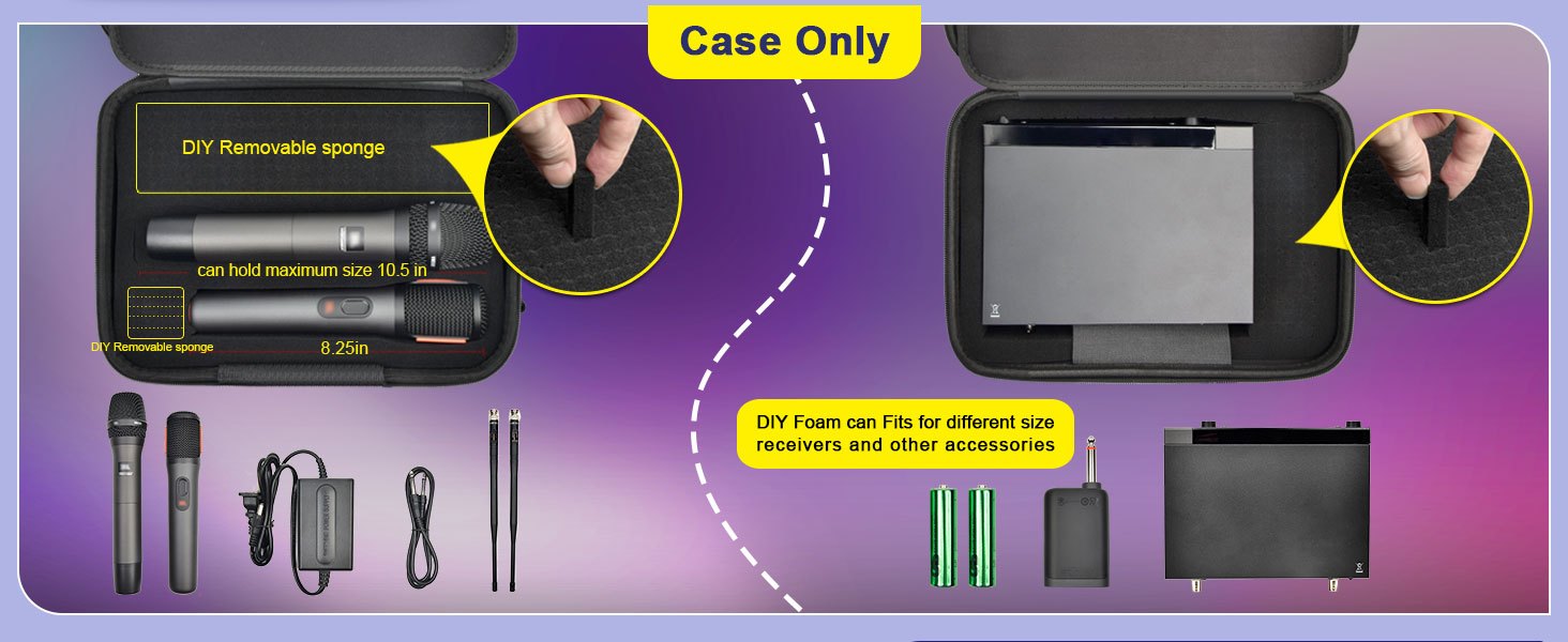 Wireless Microphone for TONOR, Shure, Bietrun, ALPOWL Two Microphone System - Large EVA Foam Storage Box with Carrying Handle, Fits Different Sizes of Microphones, Receiver, Audio Cable & Power (Box Only), Microphone Storage
