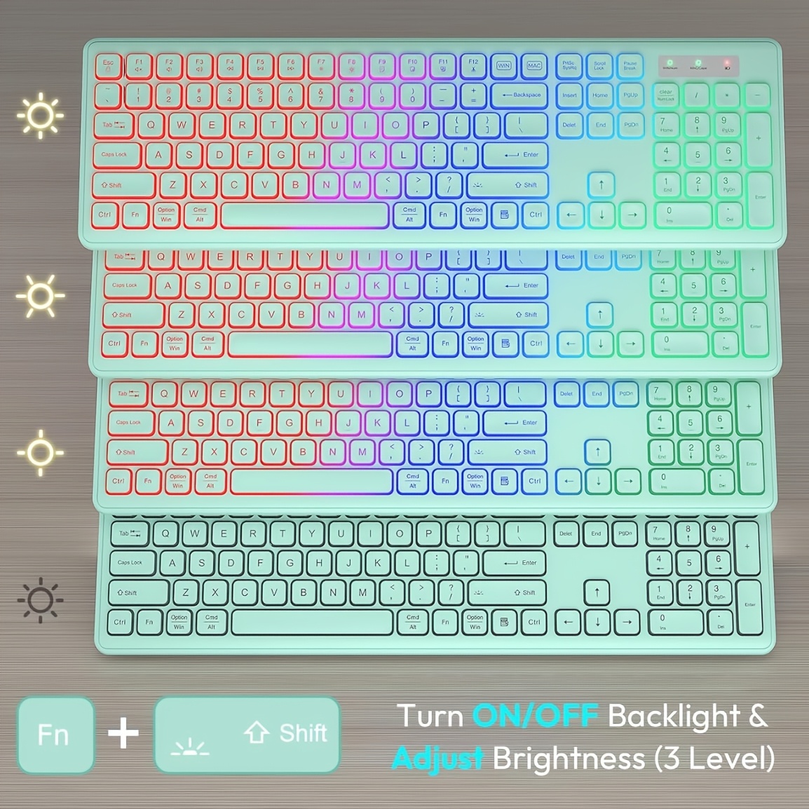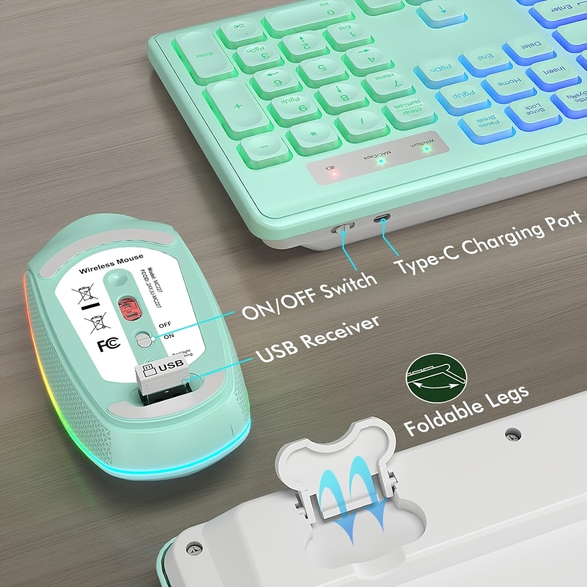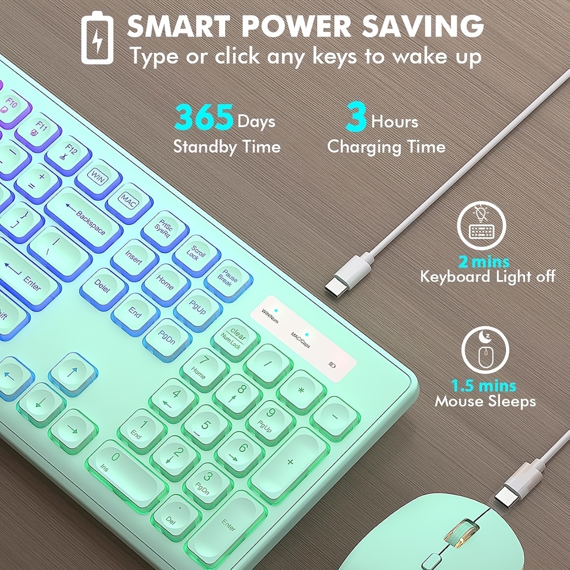 Wireless RGB Backlit Keyboard And Mouse Set with 2000 DPI, Rechargeable Quiet Mouse, Ergonomic Slim Design, Compatible with Windows And Mac Laptops.