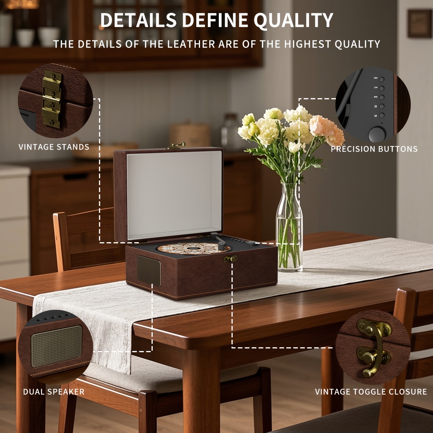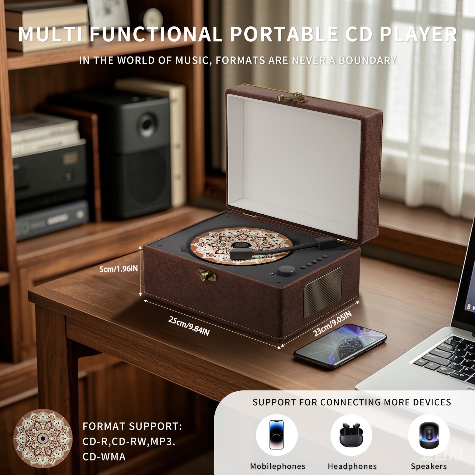 Yintiny Wireless CD Player with Built-in Speaker, Hi-Fi Sound, Compact Faux Leather Design, USB & Battery-Powered, Ideal for Home Decor & Holiday Gifts, Portable Audio Player, Stylish Audio Accessory, Durable Audio Device